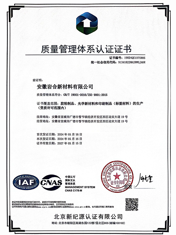 Anhui Yanhe New Materials Co., Ltd. ne se limite pas à fabriquer des produits de base. L'entreprise est spécialisée dans le développement et la fabrication de matériaux d'étiquetage spécialisés, de rubans fonctionnels pour l'industrie électronique et de produits adhésifs pour divers matériaux de films fonctionnels. Leur capacité à appliquer des revêtements de surface correspondants en fonction des exigences fonctionnelles de différentes surfaces témoigne de leurs prouesses techniques. Cela signifie que pour les applications de batteries d'ordinateurs portables, ils peuvent affiner les propriétés des étiquettes autocollantes de réduction du bruit pour non seulement fournir un excellent amortissement du bruit et des vibrations, mais également pour améliorer leurs capacités de résistance à la chaleur et au feu.